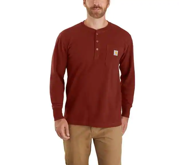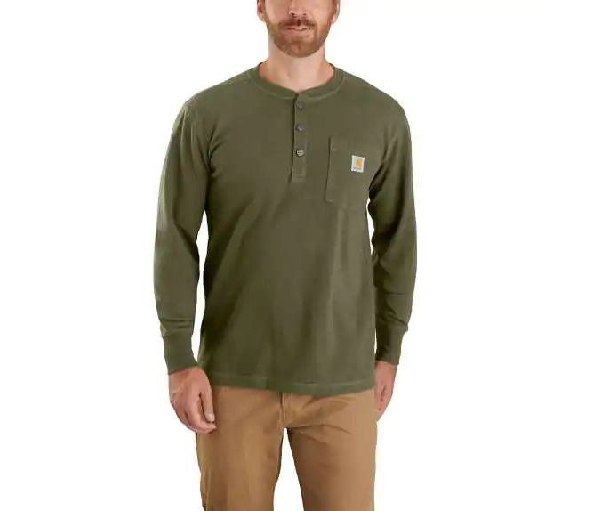 RELAXED FIT HEAVYWEIGHT LONG-SLEEVE HENLEY POCKET THERMAL T-SHIRT