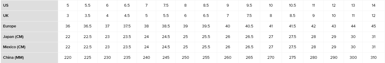 SIZE CHART