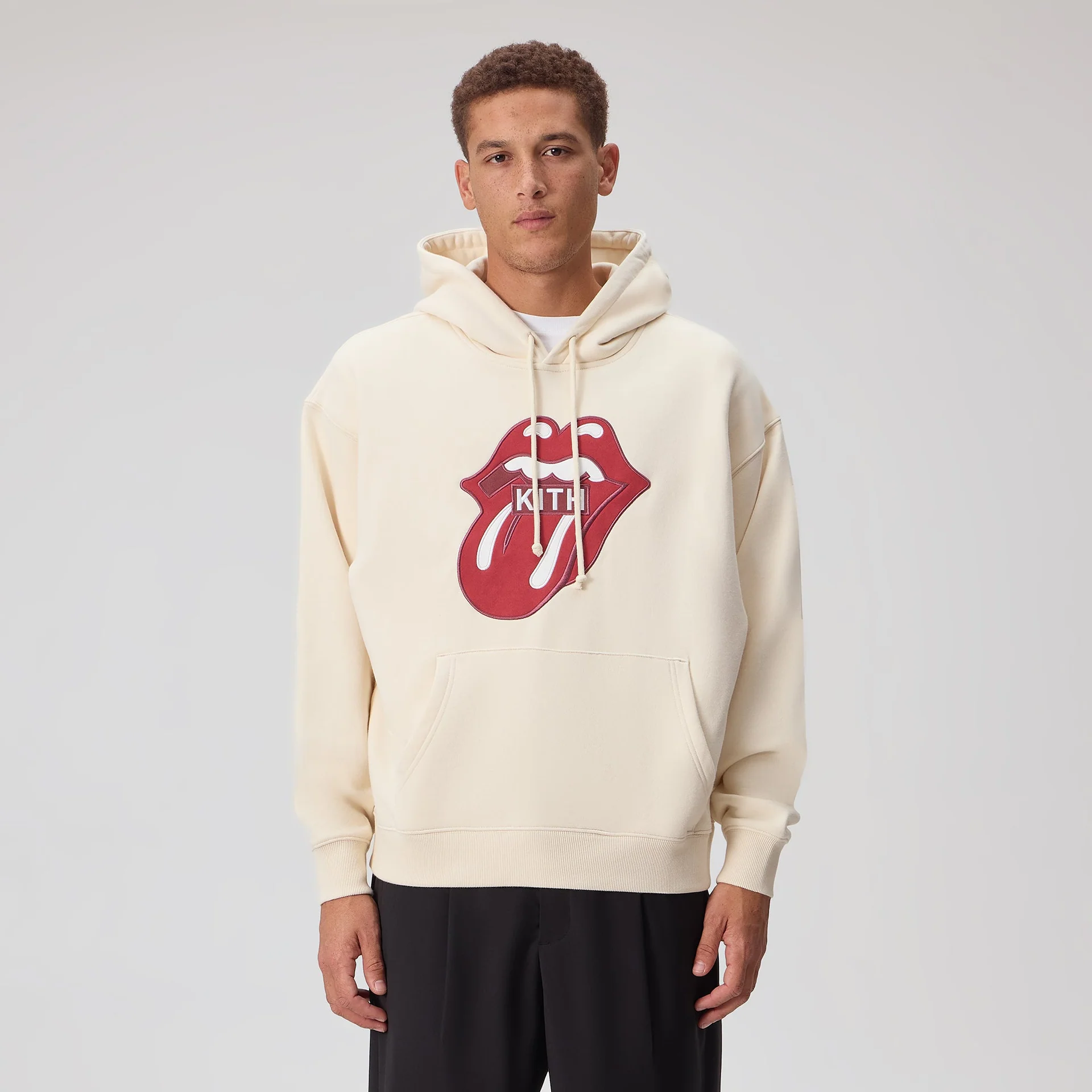 The Rolling Stones and Kith logo applique on the front