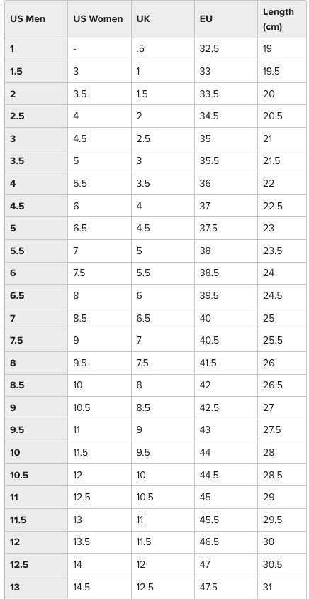 SIZE CHART
